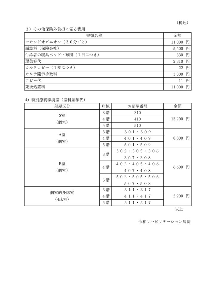 特定療養費(実費)2025.05.01(理美容代変更)